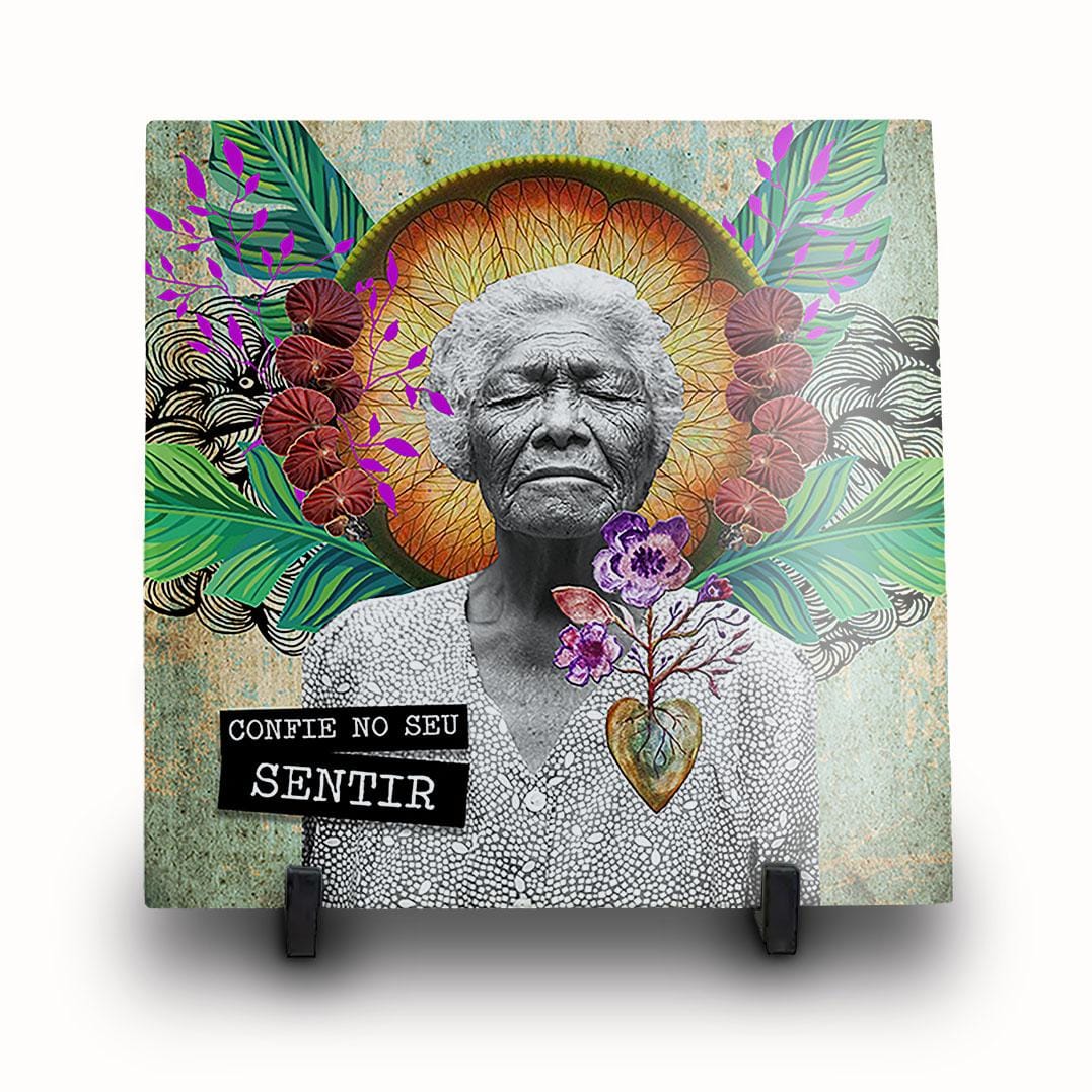 Esta imagem transmite profundidade emocional e espiritual, com um convite claro e poderoso: "Confie no seu sentir". Ela evoca a sabedoria intuitiva e a conexão com a essência interior, reforçando a importância de confiar nas próprias emoções e percepções.