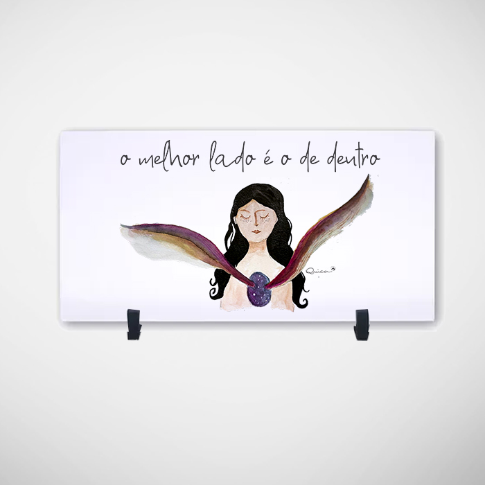 Este azulejo afetivo é mais do que um objeto decorativo; é um lembrete sutil e poderoso de que a verdadeira beleza e força residem no interior. A frase "o melhor lado é o de dentro" atravessa o espaço com delicadeza, como um sussurro da alma, convidando quem o observa a mergulhar em si mesmo e valorizar o que há de mais autêntico.