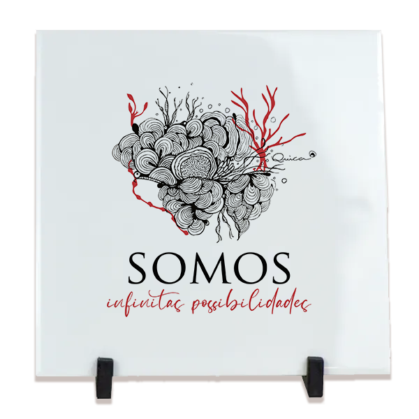 Transforme a decoração da sua casa com este azulejo decorativo impresso por sublimação, uma peça única que combina arte, emoção e cultura. A estampa apresenta uma figura cheia de significado e energia, com a frase inspiradora "Somos Infinitas possibilidades", ideal para quem valoriza autenticidade e conexão com o interior.